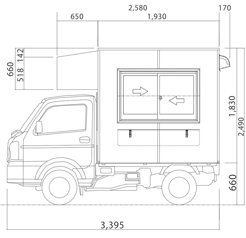 ※軽トラックは、スズキ社・ダイハツ社以外のメーカーや年式が古い場合には、hacoboのサイズ調整が必要となる可能性がございます。